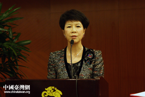 本次征文的獲獎者之一、全國政協(xié)委員胡葆琳在頒獎儀式上發(fā)表感言。(中國臺灣網(wǎng) 楊麗 攝)