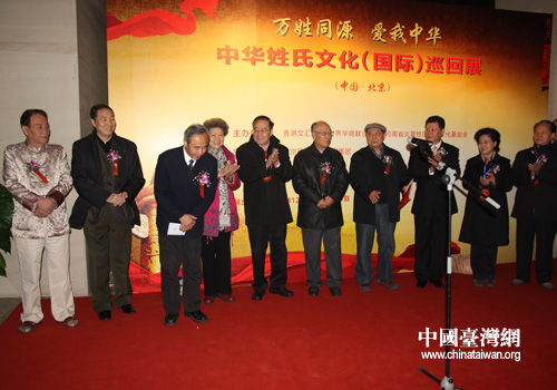 中國(guó)臺(tái)灣網(wǎng)12月6日北京消息 今天上午,北京中華世紀(jì)壇內(nèi)人頭簇動(dòng)、暖意融融,中華姓氏文化(國(guó)際)巡回展在這里隆重開(kāi)幕,吸引了海內(nèi)外眾多宗親組織負(fù)責(zé)人和姓氏研究專(zhuān)家紛紛來(lái)京,也引起了各級(jí)領(lǐng)導(dǎo)、學(xué)者及廣大普通老百姓的極大關(guān)注,開(kāi)幕式當(dāng)天就有上千人參觀。