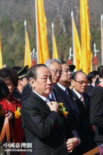 壬辰年清明公祭軒轅黃帝典禮4日上午在陜西黃帝陵舉行,新黨主席郁慕明向人文始祖敬獻了花籃。(中國臺灣網(wǎng) 楊麗 攝)