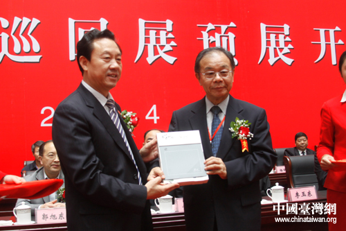 中國臺灣網(wǎng)4月24日安陽消息 日前,《漢字》巡回展安陽預(yù)展在中國文字博物館隆重開幕。臺灣淡江大學(xué)藝術(shù)中心主任、“中華畫院”院長李奇茂,臺灣“國際書法聯(lián)盟總會”會長張炳煌等11位臺灣書畫家及部分安陽專家學(xué)者代表出席開幕式。張炳煌現(xiàn)場向中國文字博物館捐贈數(shù)字E筆系統(tǒng)一套。(中國臺灣網(wǎng)、安陽市臺辦聯(lián)合報道)