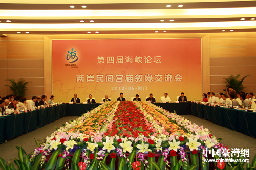 中國(guó)臺(tái)灣網(wǎng)6月17日廈門(mén)消息 百家宮廟,神緣締結(jié)民間;兄弟情義,血脈一貫綿長(zhǎng)——“第四屆海峽論壇·兩岸民間宮廟敘緣交流會(huì)”今天下午在廈門(mén)舉行。