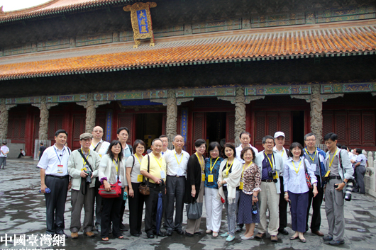 “情系齊魯——兩岸文化聯(lián)誼行”參訪團嘉賓在孔廟內(nèi)的大成殿合影。(中國臺灣網(wǎng) 芮益芳 攝)