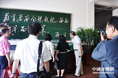 臺(tái)灣圣約翰科技大學(xué)校長(zhǎng)陳金蓮教授一行參訪大連理工大學(xué)附屬高級(jí)中學(xué)。(圖片來(lái)源:大連臺(tái)辦)