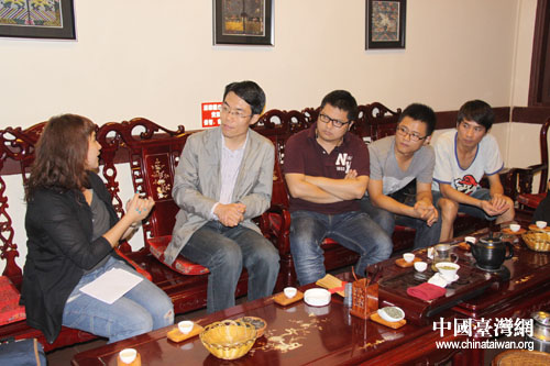 臺(tái)灣東森電視臺(tái)《生活接力棒》欄目組采訪貴陽(yáng)春黔相聲工作室“80后”相聲演員。(貴陽(yáng)市臺(tái)辦 胡珊珊 攝)