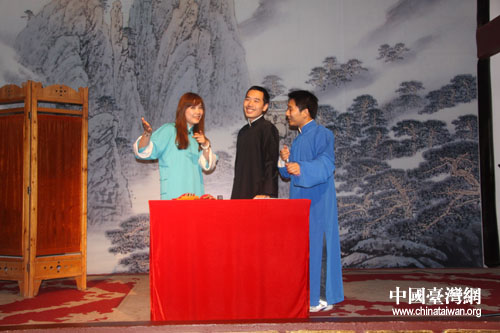 中國(guó)臺(tái)灣網(wǎng)7月13日貴陽(yáng)消息 長(zhǎng)衫、布鞋、折扇、醒木、手絹、快板,這幾個(gè)關(guān)鍵詞勾勒的,可不是一板一眼站在臺(tái)前說(shuō)相聲的老夫子,而是幾個(gè)“80后”的年輕人——穆伍、洪方舟、陳丹等。每月第一、三周六晚上的8點(diǎn),在貴陽(yáng)市達(dá)德書院,“春黔相聲工作室”的幾個(gè)80后年輕人會(huì)身穿長(zhǎng)衫,手拿快板,用夾雜著現(xiàn)代詞匯的“傳統(tǒng)相聲”來(lái)博得滿場(chǎng)的喝彩。通過(guò)網(wǎng)絡(luò)了解到貴陽(yáng)有這樣一群熱愛、傳承中華傳統(tǒng)藝術(shù)的年輕人,臺(tái)灣東森電視臺(tái)《生活接力棒》欄目組便來(lái)到這里對(duì)他們進(jìn)行采訪,希望向廣大觀眾傳遞一種精神——夢(mèng)想與堅(jiān)持。