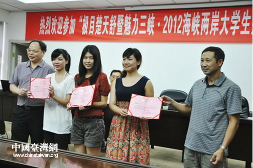 黃應(yīng)平向臺灣師生介紹了三峽大學(xué)的現(xiàn)有規(guī)模、院系設(shè)置等情況,并回顧了近些年來三峽大學(xué)與臺灣高校開展教學(xué)交流情況。開營儀式上,還為“2011·紀(jì)念辛亥革命一百周年海峽兩岸大學(xué)生征文”活動10名獲獎?wù)哳C發(fā)了獎品;兩岸的師生還互贈了禮品,開營儀式簡短、熱烈。