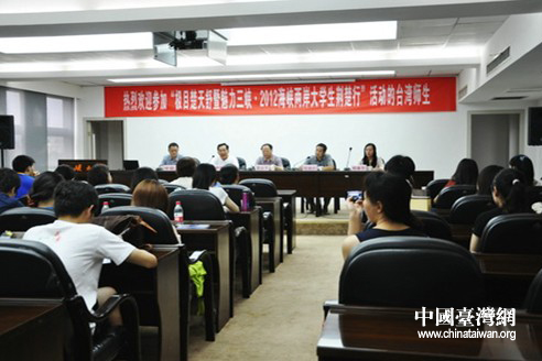 中國臺灣網(wǎng)7月13日宜昌消息 7月11日下午,來自臺灣6所高校的24名師生和三峽大學(xué)的自愿者歡聚在三峽大學(xué),舉行了“極目楚天舒·2012海峽兩岸大學(xué)生荊楚行”夏令營開營儀式。三峽大學(xué)副校長黃應(yīng)平致歡迎辭,宜昌市臺辦副主任程國慶出席開營儀式并致祝賀辭。臺灣云林大學(xué)教授許仲佑代表來宜的臺灣師生致答謝辭。