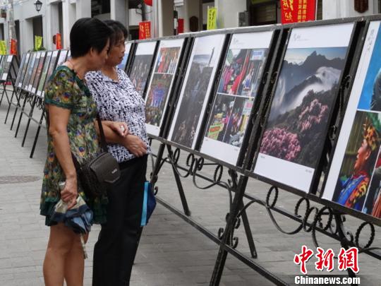 “跨越海峽”——瓊臺(tái)雙島攝影家寶島行臺(tái)灣攝影作品展4日在?隍T樓老街(中山路)展出,共有120幅反映臺(tái)灣民俗、風(fēng)光的攝影作品。