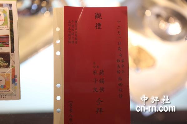 蔣中正夫婦結(jié)婚喜貼。(中評社劉冠廷攝)