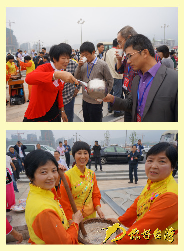 圖二:兩岸嘉賓現(xiàn)場擂擂茶、品擂茶、話擂茶