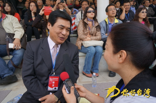 圖三:記者采訪海峽兩岸中小企業(yè)聯(lián)合促進(jìn)會總會副秘書長劉冠雄。