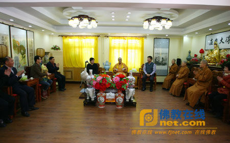 佛教在線天津訊 2013年11月11日,臺灣著名歌星鄭智化一行到天津薦福觀音寺參訪,受到薦福觀音寺住持妙賢法師及常住法師的熱情歡迎。