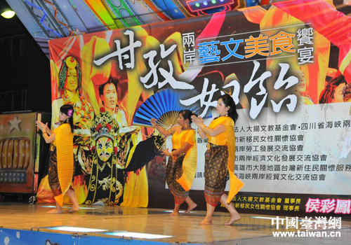 臺(tái)灣同胞同臺(tái)獻(xiàn)藝表演精彩的舞蹈。