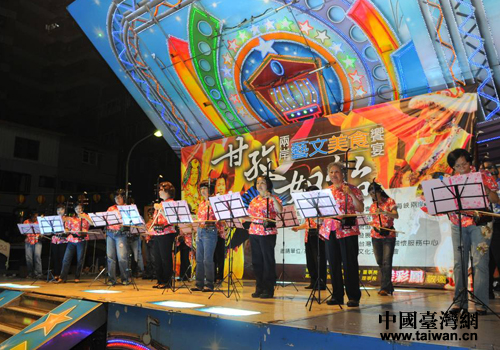 中國(guó)臺(tái)灣網(wǎng)11月13日高雄消息 日前,四川省民族歌舞赴臺(tái)交流團(tuán)第二場(chǎng)演出在臺(tái)灣高雄市三民區(qū)義民廟前的空地如約舉行。本場(chǎng)演出除了四川民族歌舞團(tuán)帶去的節(jié)目之外,臺(tái)灣同胞也上臺(tái)進(jìn)行了聲樂(lè)演奏、舞蹈等表演,兩岸同胞同樂(lè)。而演出場(chǎng)地一圈,還有數(shù)十個(gè)臺(tái)灣美食大排檔,當(dāng)?shù)厥忻癯丝梢孕蕾p文藝表演,也還可以品嘗到當(dāng)?shù)孛朗场?/p>