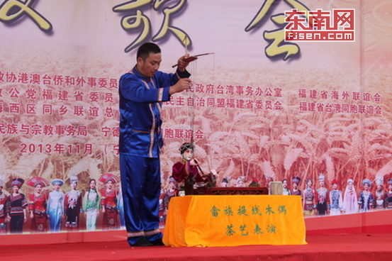 寧德少數(shù)民族藝人表演節(jié)目《畬族提線木偶茶藝表演》。
