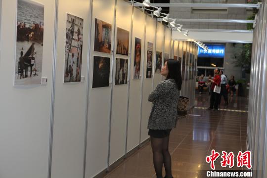 圖為一名女性在觀賞攝影展。 董會峰 攝