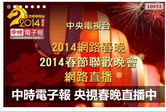 臺灣“中時電子報(bào)”在網(wǎng)站首頁鏈接央視春晚直播頁面。(圖片來自網(wǎng)絡(luò))