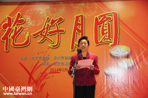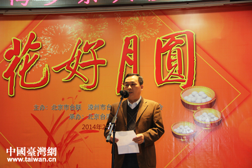 2014年2月13日,臺盟中央副主席、北京市臺聯(lián)會長蘇輝代表主辦單位向嘉賓致以節(jié)日問候。(中國臺灣網(wǎng) 楊永青 攝)