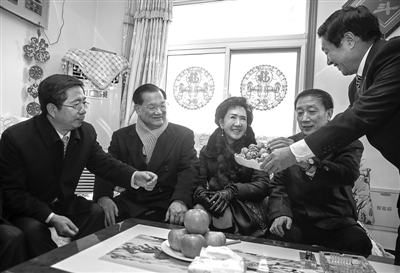 昨日,中國國民黨榮譽(yù)主席連戰(zhàn)攜夫人在平谷區(qū)掛甲峪村一戶農(nóng)家做客。張浩 攝