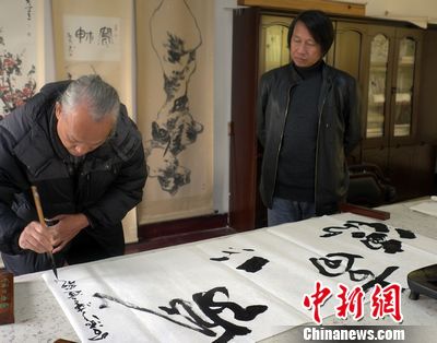 圖片1為八大山人紀(jì)念館館長王凱旋揮毫。
