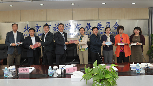 2014年4月1日,來自北京市接待臺灣游客的旅行社負責人、導游聚集一堂,參加《寶島游客逛北京》發(fā)書儀式。北京市旅游發(fā)展委員會副主任王粵、北京市人民政府臺灣事務辦公室副巡視員馬振生、北京市人民政府新聞辦公室副主任白杰出席。市旅游委、市臺辦有關部門領導、工作人員,國旅總社、中國旅行社總社(北京)有限公司、中青旅、春秋旅行社、康輝旅行社、凱撒國旅、新華國際旅行社、眾信旅行社、海峽旅行社、北京中國國際旅行社、中信旅游、神舟國際旅行社、環(huán)境國際旅行社等旅行社負責人、導游約40人參加了發(fā)書儀式。