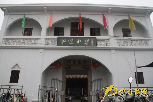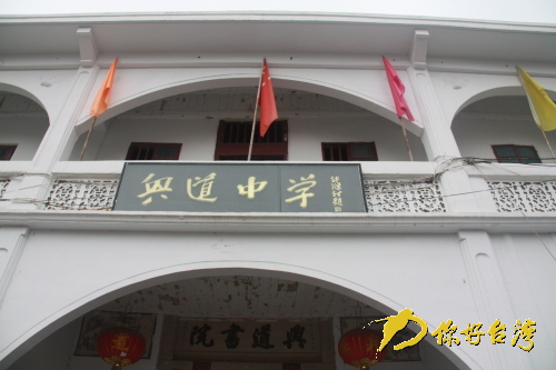 大門(mén)頂?shù)氖疑蠒?shū)“興道書(shū)院”四字,是清朝翰林院侍讀學(xué)士光緒間潮州知府劉溎年所題(你好臺(tái)灣網(wǎng) 李覲如 攝)