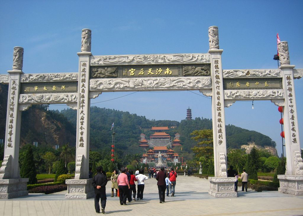 南沙天后宮,緊臨珠江出?诹尕暄,坐落于大角山東南麓,依山傍水,其建筑依山勢層疊而上,殿宇輝煌,樓閣雄偉,在天后廣場正中就是石雕天后圣像,是為紀(jì)念海上女神林默而建,建筑特點(diǎn)是集北京故宮的風(fēng)格和南京中山陵的氣勢于一體,其規(guī)模是現(xiàn)今世界同類建筑之最,被譽(yù)為“天下天后第一宮”,也是東南亞最大的媽祖廟。天后圣像高達(dá)14.5 米,屹立在天后宮廣場正中。整座天后宮四周綠樹婆娑,殿中香煙裊裊,置身其間令人頓生超凡脫俗的感覺。