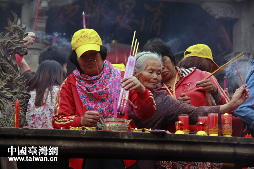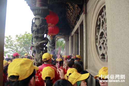 媽祖誕辰愈近,來湄洲媽祖祖廟謁祖的進(jìn)香者劇增,圖為4月20日早上媽祖廟進(jìn)香信眾。(中國臺灣網(wǎng) 楊麗 攝)