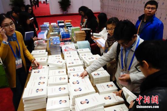 資料圖:圖為《習(xí)近平談治國(guó)理政》一書(shū)吸引媒體關(guān)注。中新社發(fā) 杜洋 攝