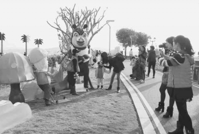 25日,記者在福州馬尾區(qū)江濱東大道沿線看到,以“燈耀兩馬·夢圓兩岸”為主題的第十三屆“兩馬同春鬧元宵”花燈展已具雛形,不少展區(qū)已完成布展,造型各異的花燈把沿途景致裝點得喜慶熱鬧、絢麗多姿,江濱東大道及東江濱公園里隨處可見正忙碌布置花燈的工作人員和拿著手機拍照留念的游客(如圖)。