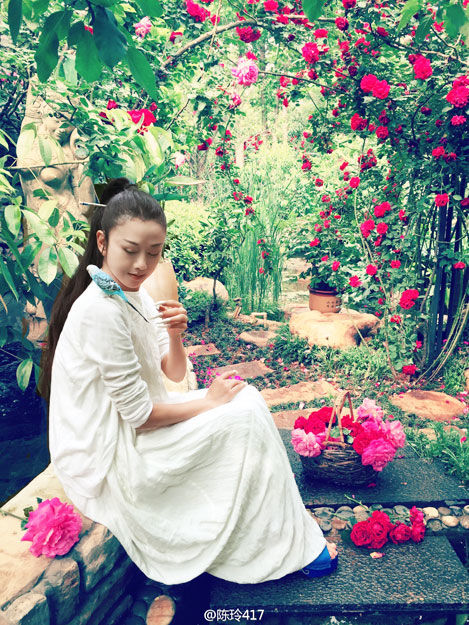 網(wǎng)友近期在微博曬出一組57歲楊麗萍在家中花園采花的照片。(來源:鳳凰網(wǎng))