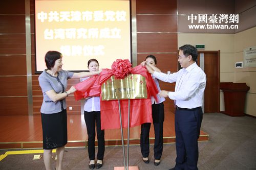 天津市臺(tái)辦主任周克麗、市委黨校常務(wù)副校長孟慶松共同為臺(tái)研所揭牌。