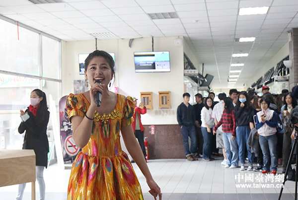 來自新疆的維吾爾族女孩古麗?孜帕爾演唱新疆民歌《青春舞曲》。(中國臺灣網(wǎng) 普燕 攝)