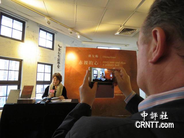 夫婿IAN在臺(tái)下持手機(jī)為演講致詞的蔣友梅拍照。(中評(píng)社 吳政峯攝)