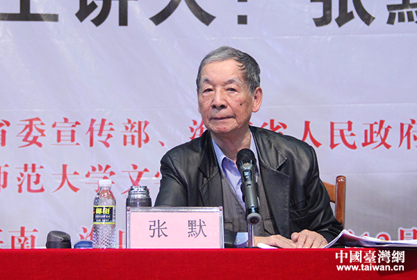 2015年“詩意中國”兩岸詩會(huì)走進(jìn)海南師范大學(xué)校園,臺(tái)灣著名詩人張默為該校同學(xué)進(jìn)行了一場關(guān)于詩歌創(chuàng)作及書畫藝術(shù)的講座。(中國臺(tái)灣網(wǎng) 普燕 攝)