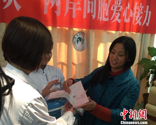 圖為河南省腫瘤醫(yī)院中心試驗室主任范瑞華,將來自臺灣的造血干細胞交接給主任醫(yī)師符粵文!熂t壘 攝