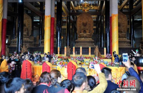 中新社成都4月12日電 (記者 胡敏)12日,四川石象寺舉行儀式恭迎臺(tái)灣慈法禪寺釋迦牟尼佛佛骨真身舍利,迎請(qǐng)之后,舍利將永久供奉于石象寺。