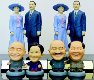國(guó)民黨黨史館主任邵銘煌說(shuō),黨史館與廠商開發(fā)訂制兩岸政治人物Q版公仔,馬英九、蕭萬(wàn)長(zhǎng),蔣介石、蔣經(jīng)國(guó)等,巧妙地把蔣介石與毛澤東搭配為“握手言歡”的主題,兩公仔互搭肩的手勢(shì)且笑開懷,一笑抿恩仇。
