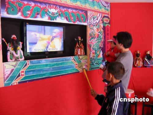 4月26日,由昆山臺商臺胞精心打造的大陸首座臺灣懷舊風(fēng)情街在“中國第一水鄉(xiāng)”周莊開街,臺北小故宮、懷舊實景照相館、童玩糖果雜貨店等仿造上世紀(jì)五、六十年代臺灣建筑風(fēng)格,還原臺灣五十年前居民生活的場景,而臺灣傳統(tǒng)戲劇表演之一的布袋戲更是吸引了不少孩童駐足觀賞和把玩。 中新社發(fā) 黃瑩 攝