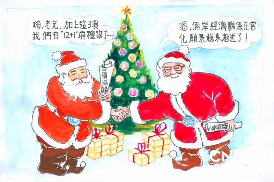 自去年6月以來(lái)兩會(huì)復(fù)談以來(lái),兩會(huì)共進(jìn)行了四次領(lǐng)導(dǎo)人會(huì)談,共簽署了十二項(xiàng)協(xié)議,達(dá)成一項(xiàng)共識(shí)。隨著兩岸農(nóng)、漁等三項(xiàng)協(xié)議的簽署,兩會(huì)協(xié)商成果也越來(lái)越多地向社會(huì)各界和基層民眾傾斜,為越來(lái)越多的兩岸同胞所分享。(策劃:安亞強(qiáng) 張鵬 黃永波;繪畫:安坤)
