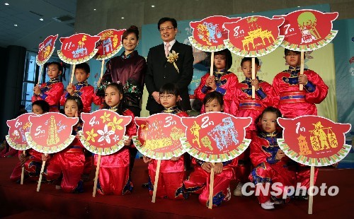 臺灣“客委會”主導(dǎo)策劃的“客莊十二大節(jié)慶”將邁入第二年,2010年投入更多資源與人力,精選出19項客家慶典,包括美濃“迎圣跡·字紙祭”、三義云火龍節(jié)、新竹縣“義民文化祭”、“國姓搶成功”等,貫穿全年12個月。圖為12月29日,“客委會”黃玉振(后排右四)在記者會上邀請民眾造訪活力與人文兼具的客家莊。(圖片來源:中新社 曾嘉 攝)