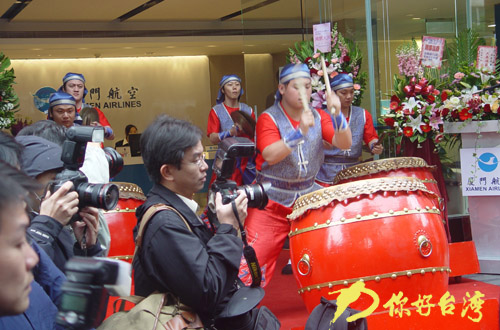 1月6日上午,廈門航空臺灣分公司開業(yè)儀式在臺北市民生東路盛大舉行,典禮在臺灣知名的“廷威鼓陣”氣勢磅礴的演出中拉開序幕。廈航總經(jīng)理車尚輪專程到臺北主持剪彩,中國國民黨榮譽(yù)主席吳伯雄、海峽交流基金會董事長江丙坤、臺“交通部民航局長”李龍文、臺“交通部觀光局長”賴瑟珍和臺灣各航空公司董事長出席開幕典禮。