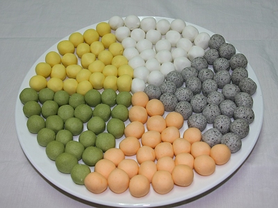 五行客家湯圓的顏色來(lái)自于自然食材的原色,不加人工色素,采用紅蘿卜、菠菜、南瓜、芝麻及米團(tuán)本來(lái)的白色,所以一道料理可以吃到五種口味的湯圓,其中芝麻最香。老板娘又表示,客家湯圓要好吃,就要依照古老的方法,由洗米、泡米、磨漿、濾去水份,再揉成一粒一粒的湯圓,這樣的湯圓才會(huì)比較Q,而不是用米粉直接和水制作的湯圓所能比。同時(shí)要有五種顏色,再制作過(guò)程更加費(fèi)時(shí),而且以手工完成,每天能供應(yīng)的數(shù)量有限。