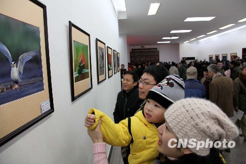 1月9日上午,首屆“海峽兩岸生態(tài)攝影作品展”在福建福州畫院開幕,吸引眾多人前往觀看。參展的海峽兩岸攝影家109幅鳥類、獸類、昆蟲、植物、海洋生物等作品,以獨(dú)特的藝術(shù)眼光、精湛的攝影技巧,記錄生物的自然生存現(xiàn)狀,生動(dòng)展示了海峽兩岸生態(tài)保護(hù)的最新進(jìn)展。 中新社發(fā) 楊婀娜 攝
