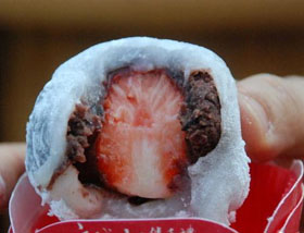 草莓大福,里頭有一顆大大的新鮮草莓。