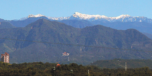 強(qiáng)烈大陸冷氣團(tuán)來襲,近來臺(tái)灣高山群大雪紛飛,成了銀色世界。玉山白頭在平地清晰可見,十分罕見;在嘉義縣民雄鄉(xiāng)住了近十年的曾小姐,驚訝表示沒在民雄看過如此清楚的玉山雪景。