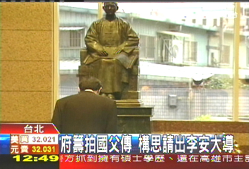 環(huán)球網(wǎng)記者高琿報(bào)道 電影《十月圍城》票房告捷,臺(tái)灣“總統(tǒng)府”也搶搭熱潮。馬英九親自囑咐國(guó)民黨黨史館館長(zhǎng)邵銘煌籌拍“臺(tái)灣版國(guó)父?jìng)鳌,邵銘煌則建議由國(guó)際知名導(dǎo)演李安拍攝。