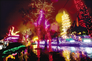 昨晚,南京白鷺洲公園內(nèi)各種彩燈全部綻放,進(jìn)行最后的試燈,在夜幕下散發(fā)出迷人的光彩。臺(tái)灣的“鳳凰”花燈(圖左側(cè)燈組)安裝在公園內(nèi)的印月橋上,與周圍的燈組遙相輝映,營(yíng)造出一片節(jié)日的氛圍。宋嶠 攝