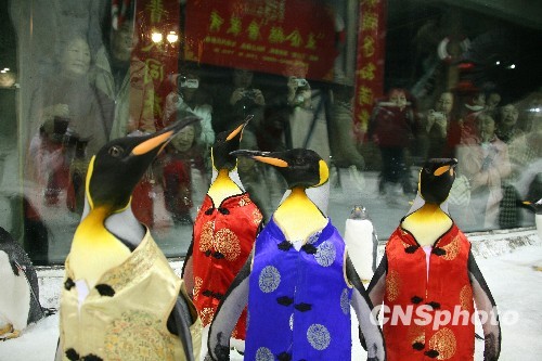 企鵝穿唐裝鬧新春。中新社發(fā) 陳浩浩 攝