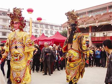 同時(shí),來自臺(tái)灣的風(fēng)味小吃,在八卦樓門前的廣場(chǎng)上擺開一長(zhǎng)溜的攤點(diǎn)。今天,活動(dòng)現(xiàn)場(chǎng)將繼續(xù)舉行民俗表演,臺(tái)灣小吃展銷也會(huì)在原地候客。(記者 蘇演卿 卞軍凱文/圖)